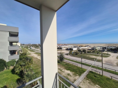 Esclusivo trilocale fronte mare, al secondo piano servito da ascensore e con cantina di proprietà.